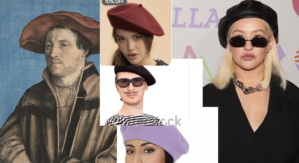 I have always found a beret to be validating of my identity as an artist. Even 12 years into my career, I wrestle with impostor syndrome constantly. But artist = beret, and I feel like an artist when I wear one. A cute artist!